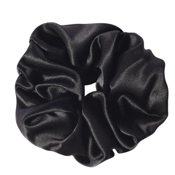 Classic black 30 momme silk scrunchie, 8cm wide, offering a sleek, polished look while being gentle on hair.