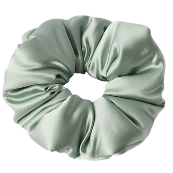 Mint green 30 momme silk scrunchie with filling, 8cm size, giving a fresh, calming feel while caring for hair.