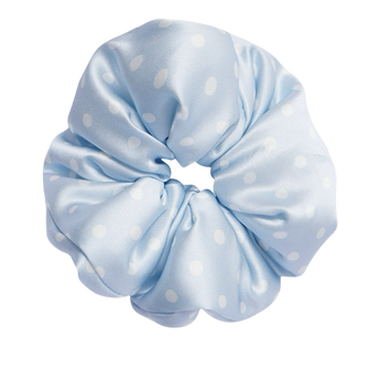 Poker Dot Mist Blue White Silk Scrunchie with Filling