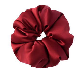 Make a simple ponytail feel special. This saturated red scrunchie cushions hair with silk filling and a silky shell that helps reduce friction and frizz.
