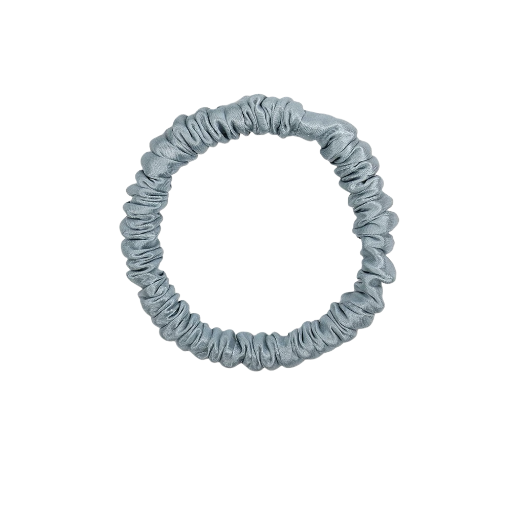 Blue haze 19 momme silk scrunchie, 1cm size, with a calming tone that’s gentle on hair and stylish for any occasion.