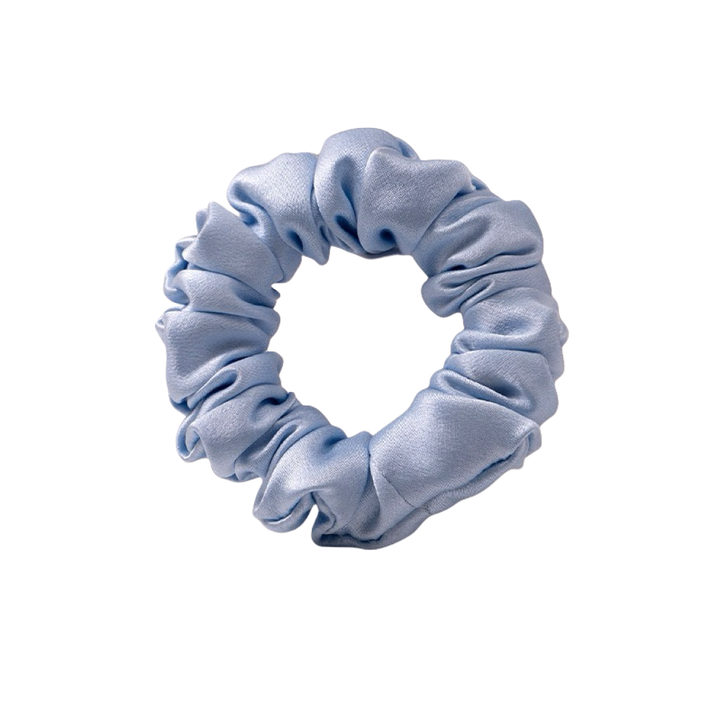 Cool, dreamy, and oh-so-gentle. This Blue Haze silk scrunchie in 30 momme fabric protects your hair while adding a touch of airy elegance to your style.
