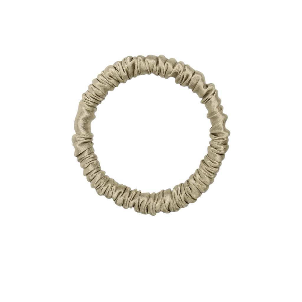 Champagne 19 momme silk scrunchie, 1cm width, adding a subtle, elegant shine to your hairstyle.
