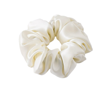 This Cream Classic Silk Scrunchie is made from 19 Momme 100% mulberry silk. Its neutral shade complements all outfits, while the 4cm design ensures gentle hold without tugging. Perfect for both casual and formal wear.